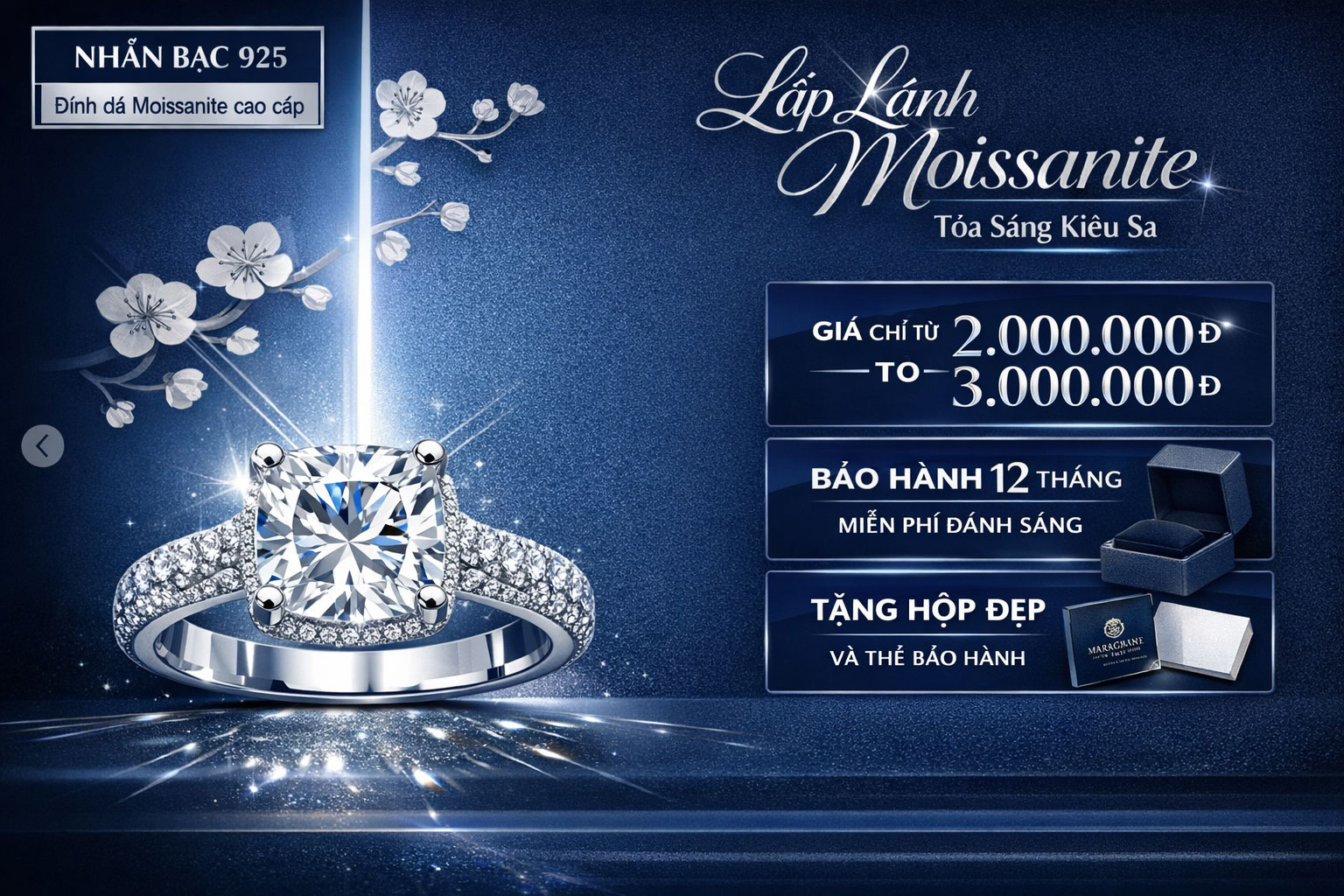 Nhẫn Moissanite bạc Sterling 925 “London”